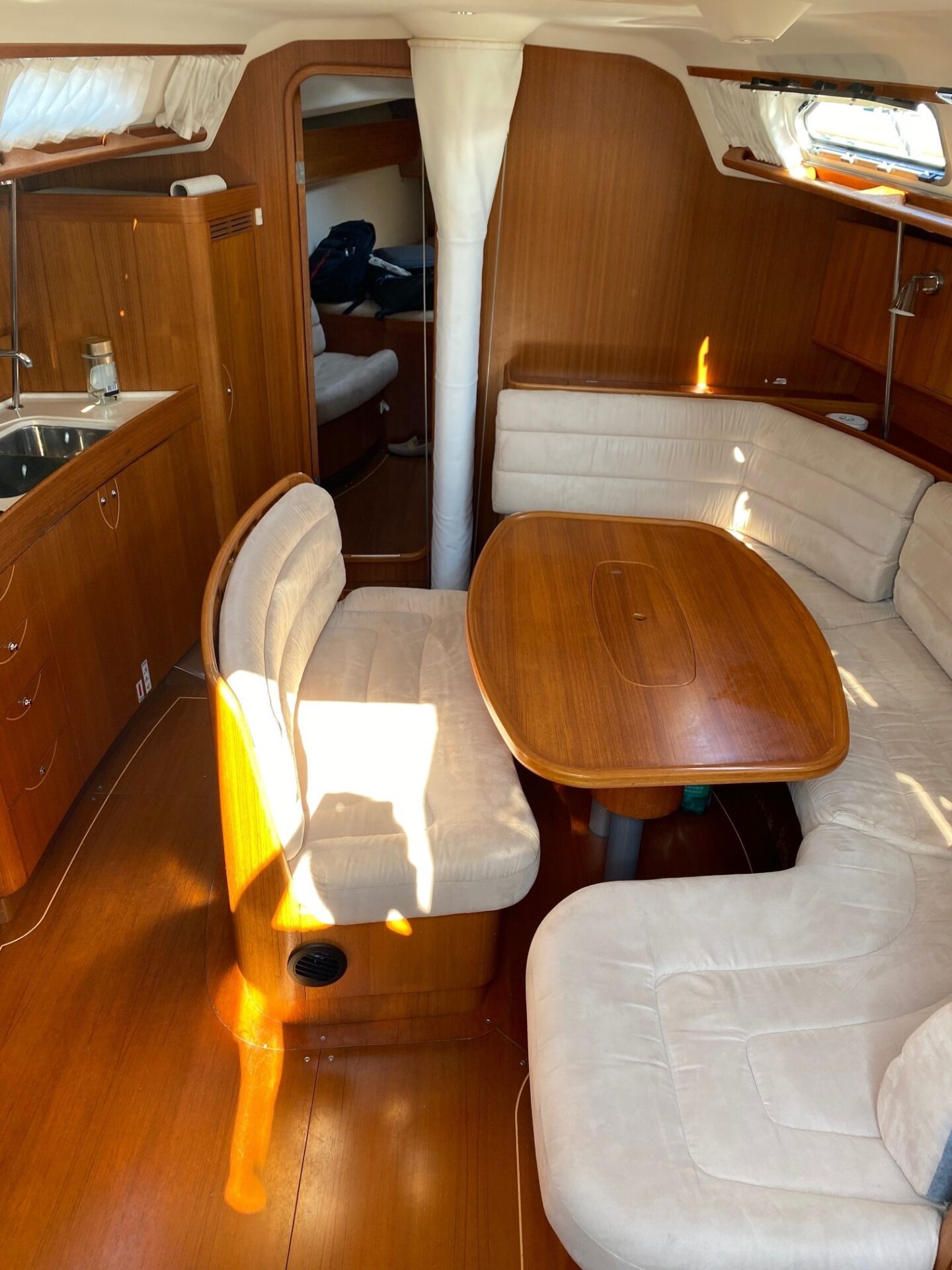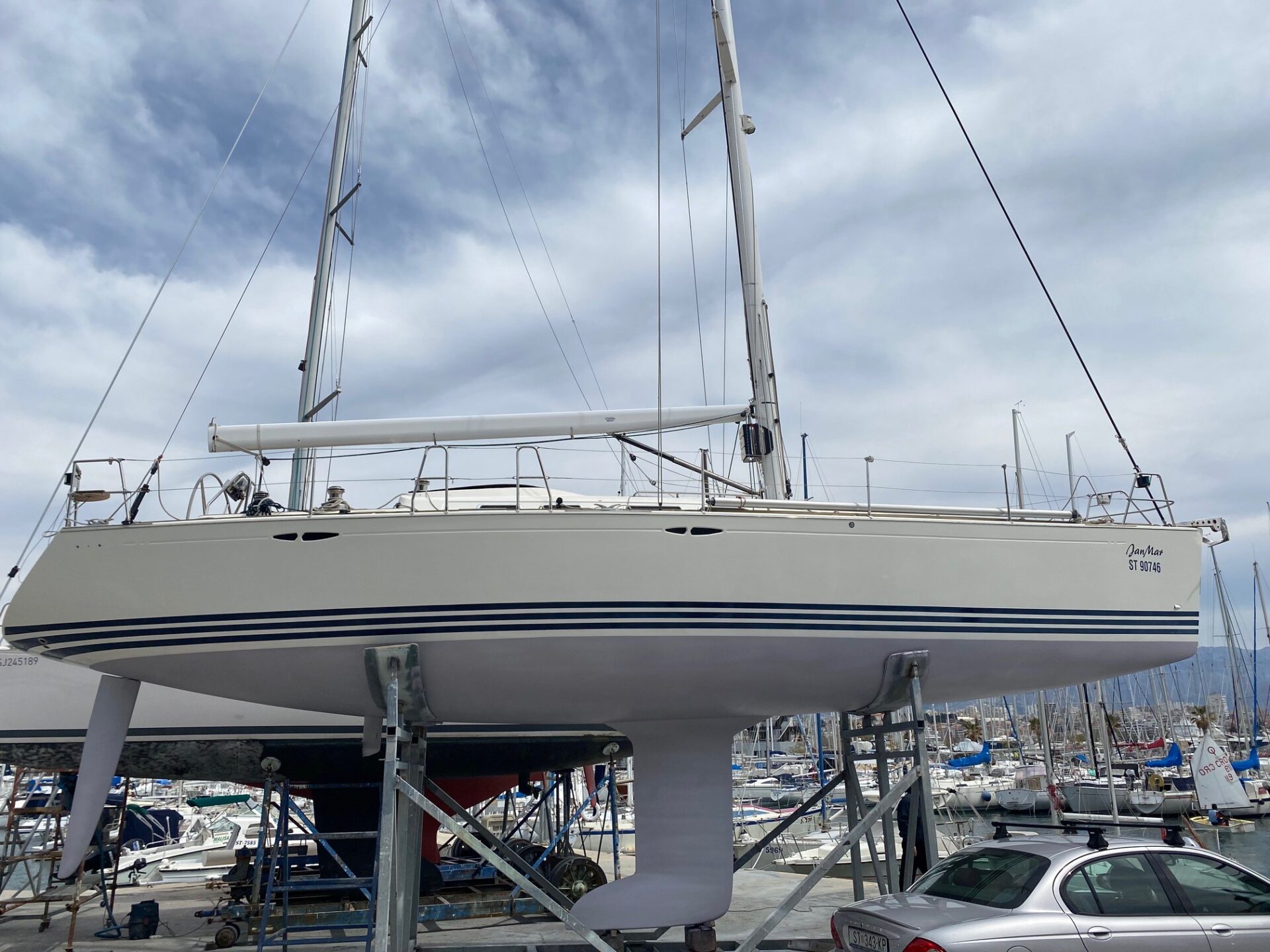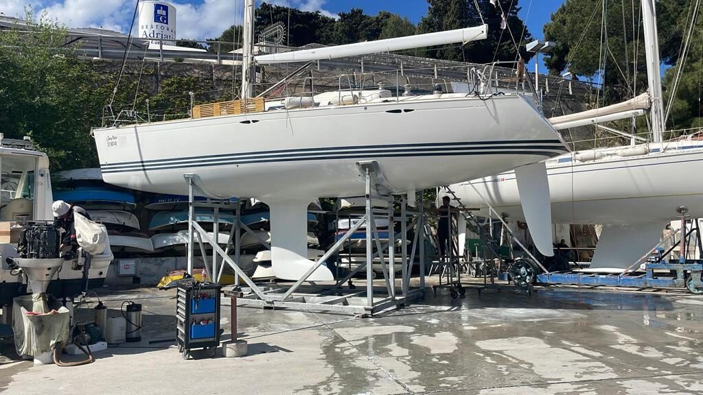 Very well maintained. Every year, hull and deck polish, new underwater paint, engine and sail drive service etc.