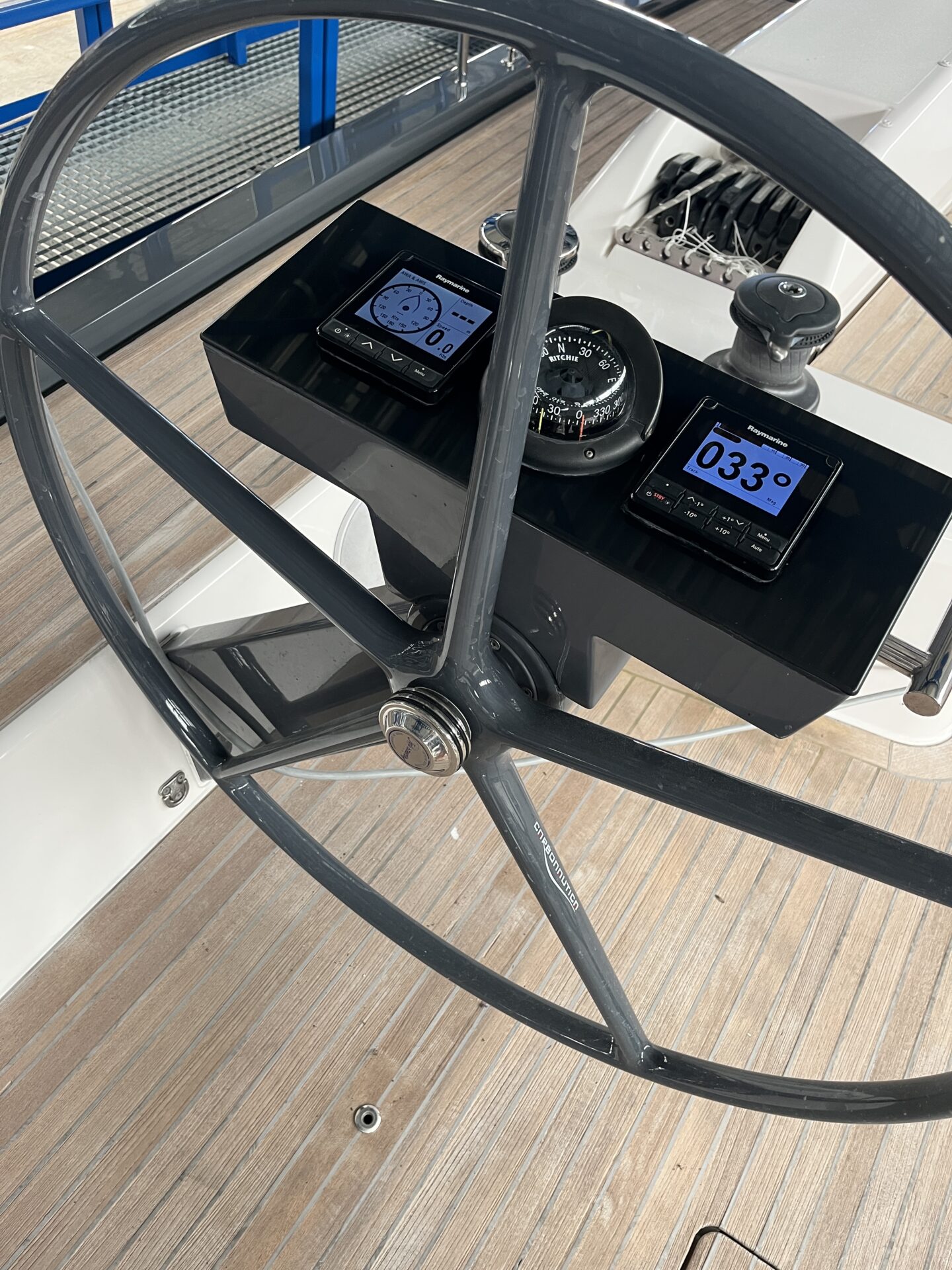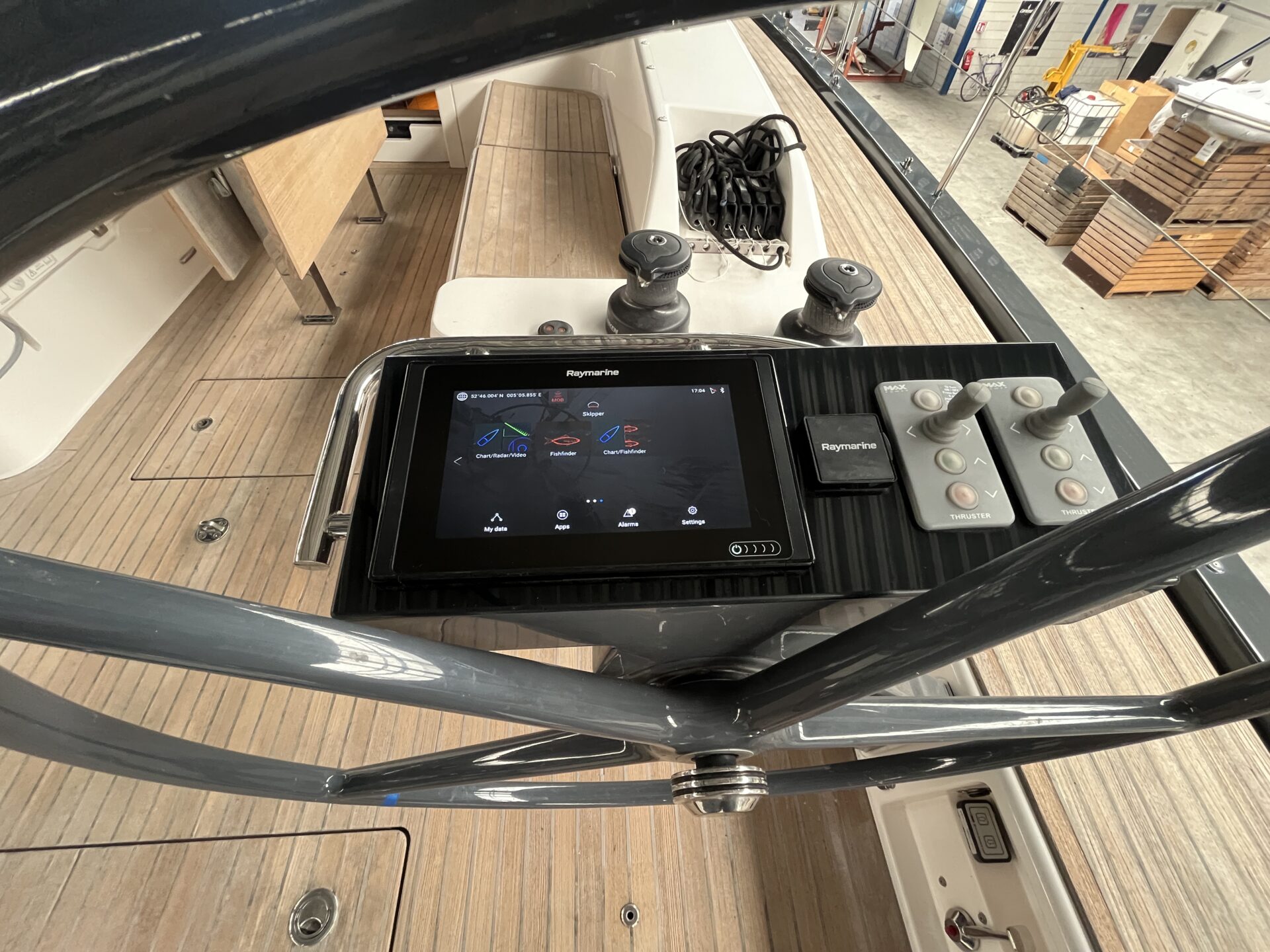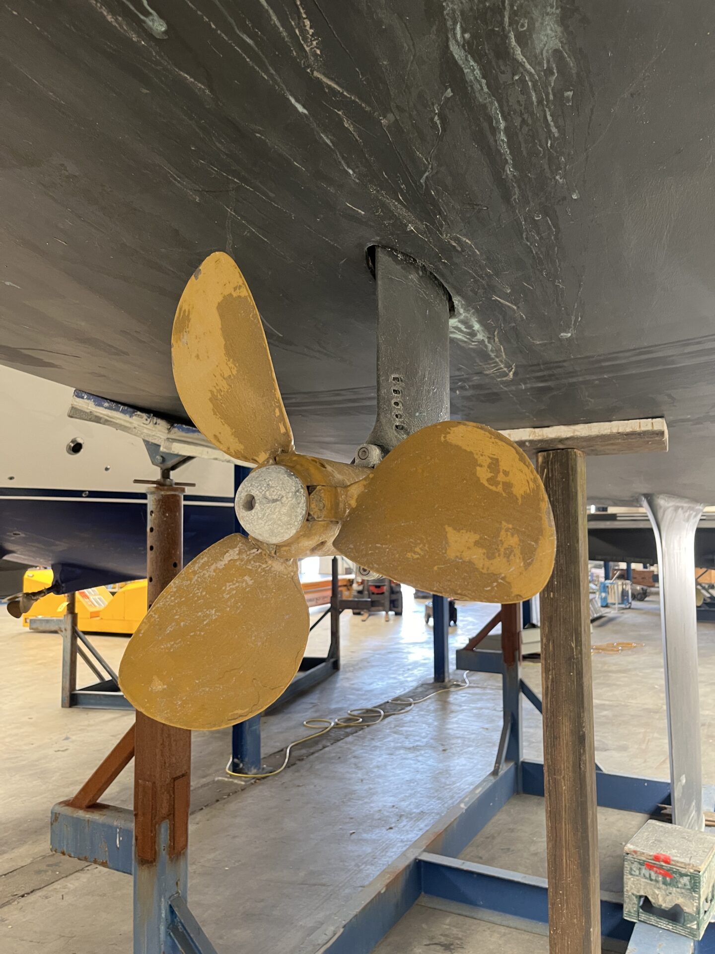 The bulb of the 2.70m draft keel is currently dismounted, offering more flexibility in transport options.