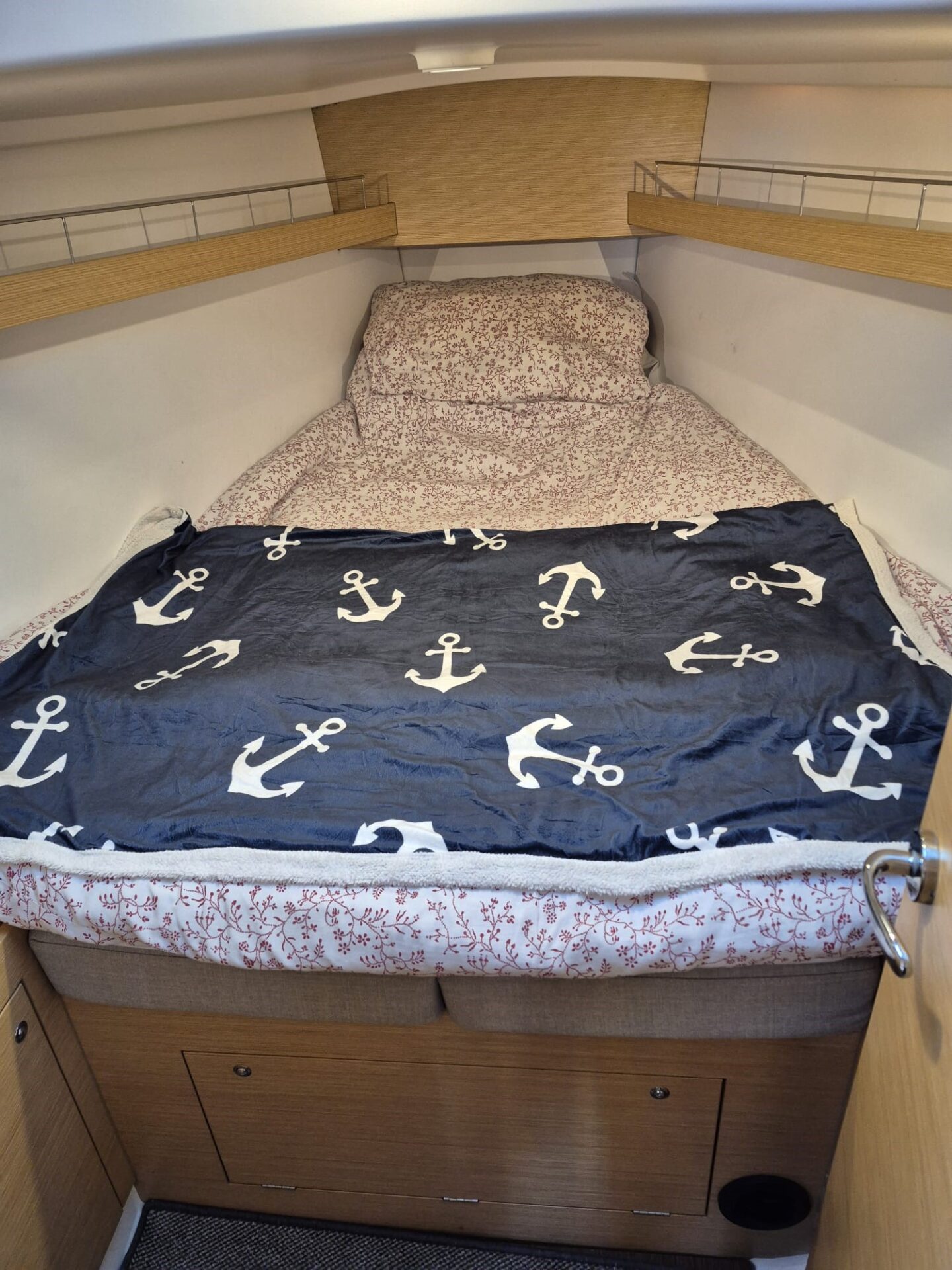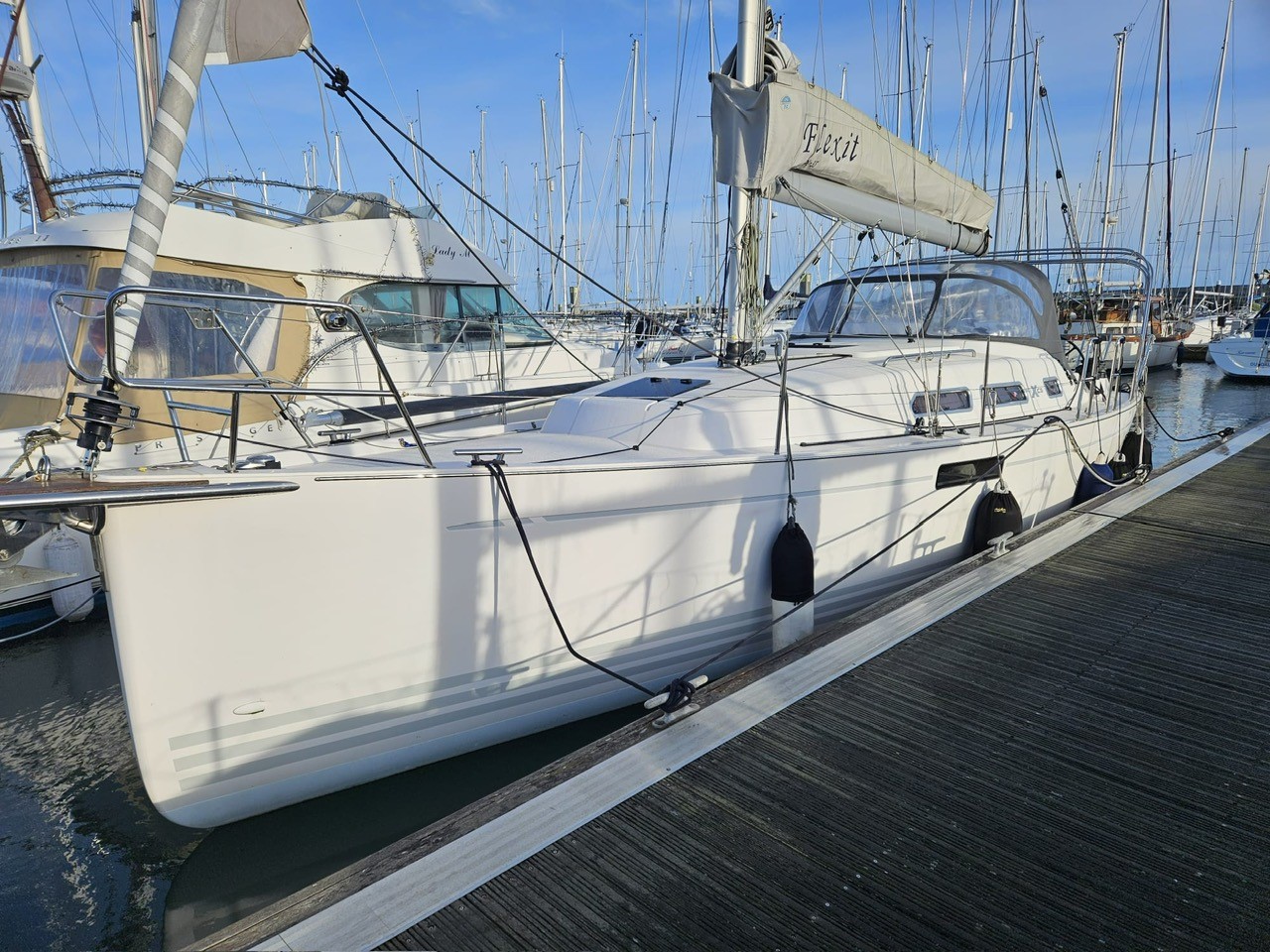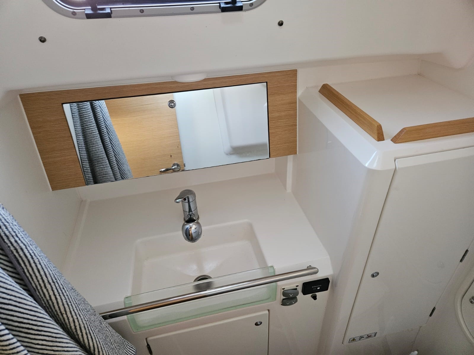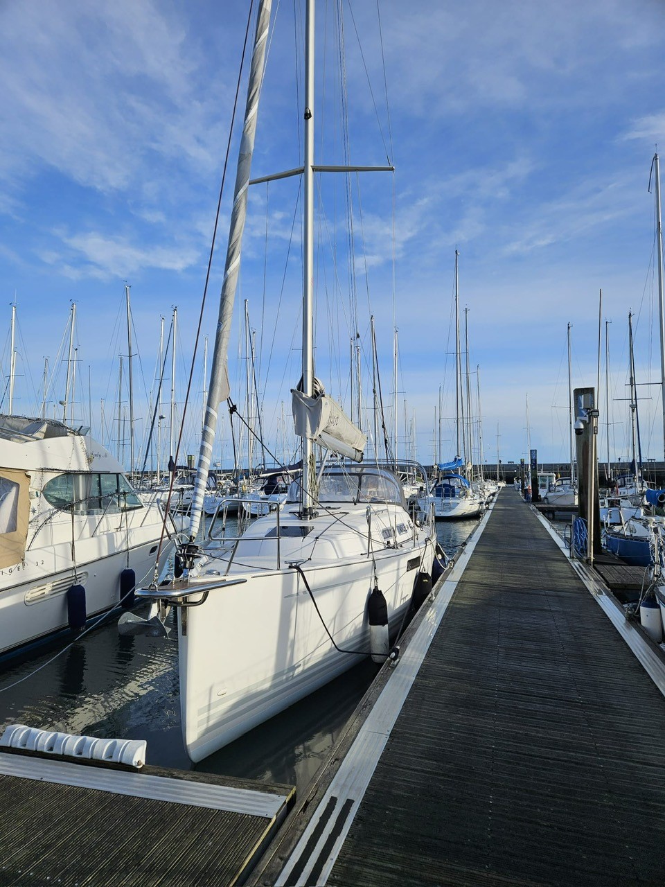 X-Yachts Irelandinfo@x-yachtsireland.comXc 35, build number #22, commissioned 2017. White hull with light grey hull stripes and 1.90m L-shaped keel. Standard aluminium mast with stackpack for mainsail. Teak on cockpit, and practical non-slip sidedecks and coachroof. Below decks she has two cabins, with one heads, classic layout with U-galley to port, and owner's berth forward.