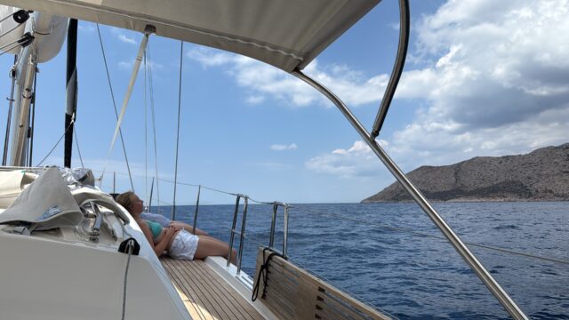By the end of the week, I felt both exhausted and alive. Sailing in Greece is never just a holiday. It’s a mix of salt and sun, relaxation and difficulty, moments of challenge and moments of glee. I learned that the easiest things: swimming in the beautiful waters, eating local food , and watching the sunset from the boat are often the most effective.”