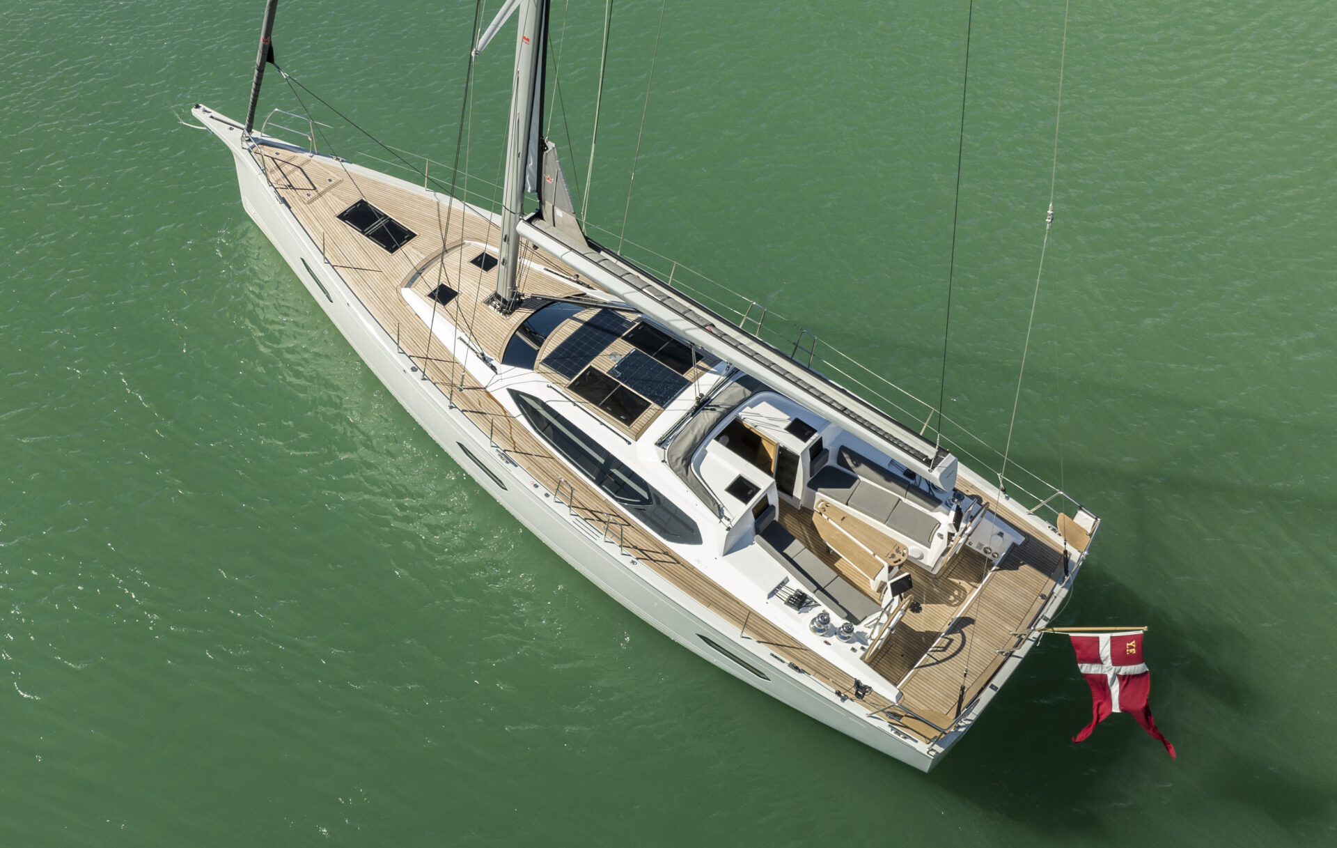 She has been configurated with electrical propulsion engine from OceanVolt including large Lithium propulsion battery bank, induction cooktop and electric stove, integrated solar panels on coach roof and much much more. You will be able to view the yacht at boat shows or at the Yard in Haderslev.