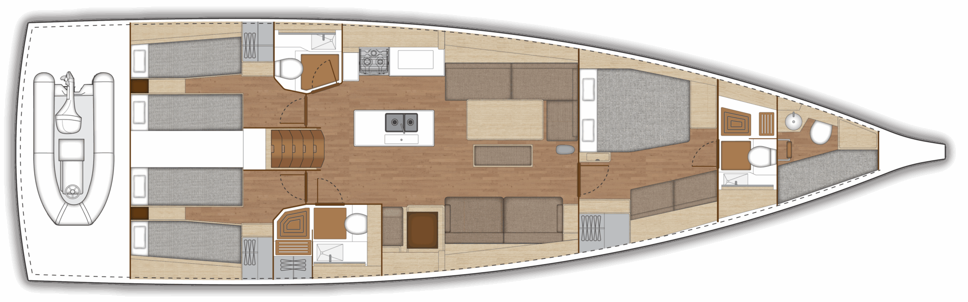 It could be argued that the sailplan for any yacht is one of its most important features. From the inception of the Pure X Range, flexibility has been key. X-Yachts took the best from our performance and cruising ranges, which is why you’ll find the X56 can be specced with a self-tacking jib for ease of handling when short handed and longitudinal genoa tracks to maximise sailing performance - the choice is yours.