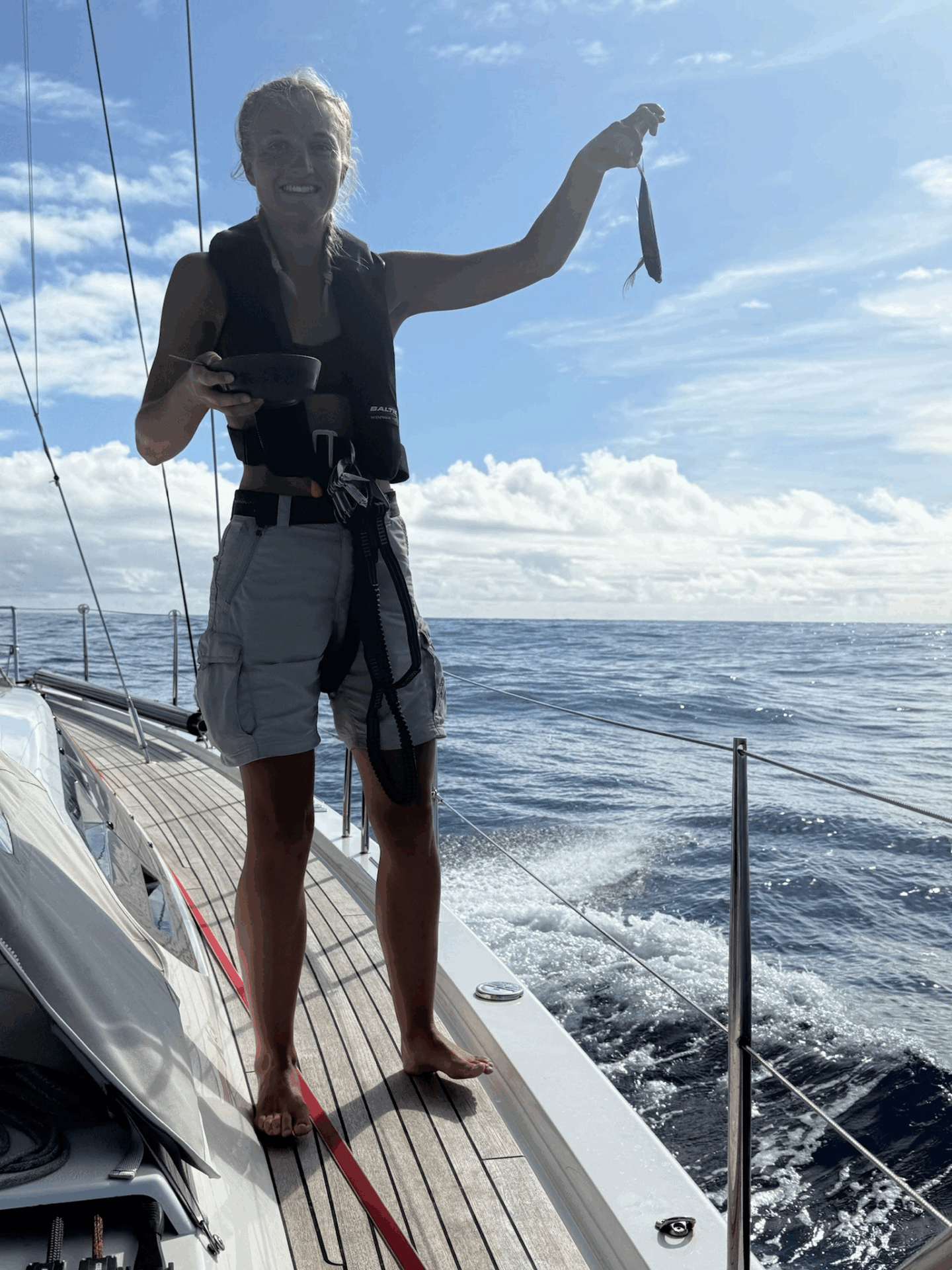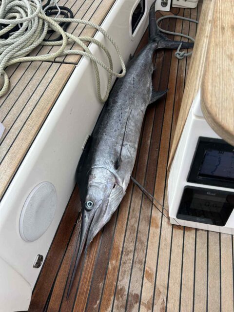 Just 90 minutes after sailing off with their newly rigged gear, the reel screamed—this time, they knew exactly how to handle it. The result: a magnificent 180 cm spear fish, the largest catch of the entire voyage.